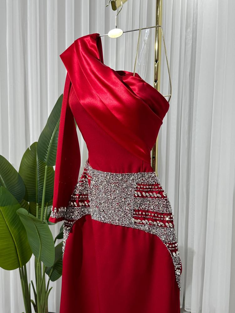 فستان احمر تطريز شك يدوي
