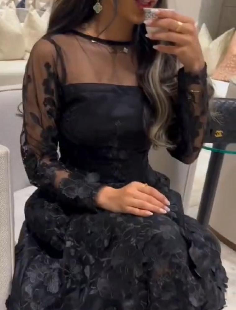 فستان اسود ورد يتميز هذا الفستان بقماش ناعم وقصته التي تنسدل بشكل أنيق على الجسم. كما يتميز بالموديل الجذاب التي تُضفي لمسة من الإثارة على المظهر.