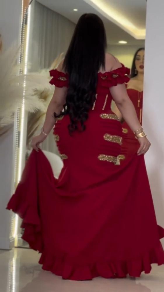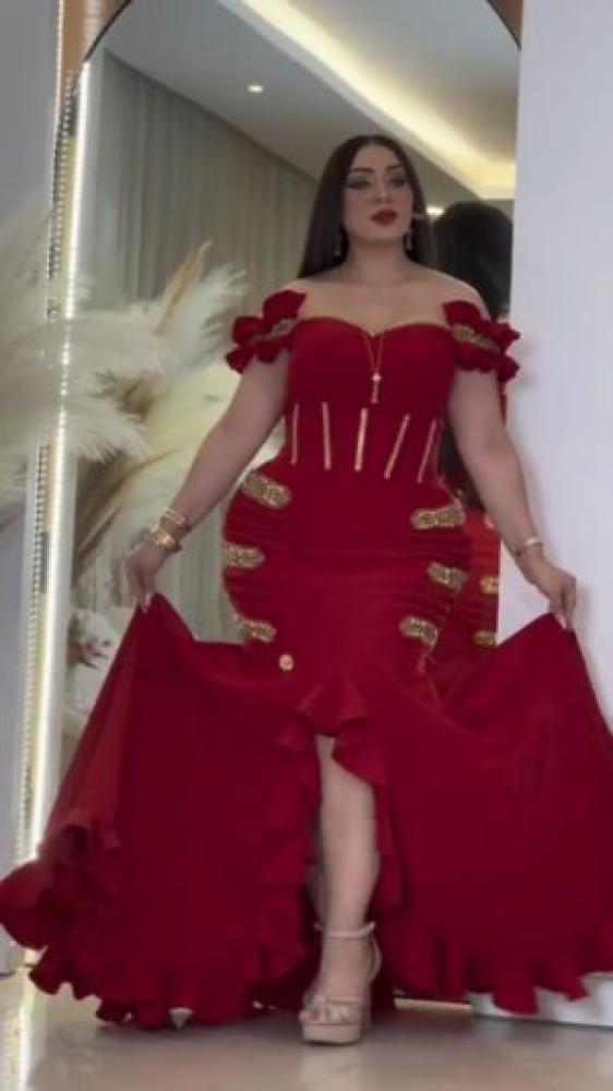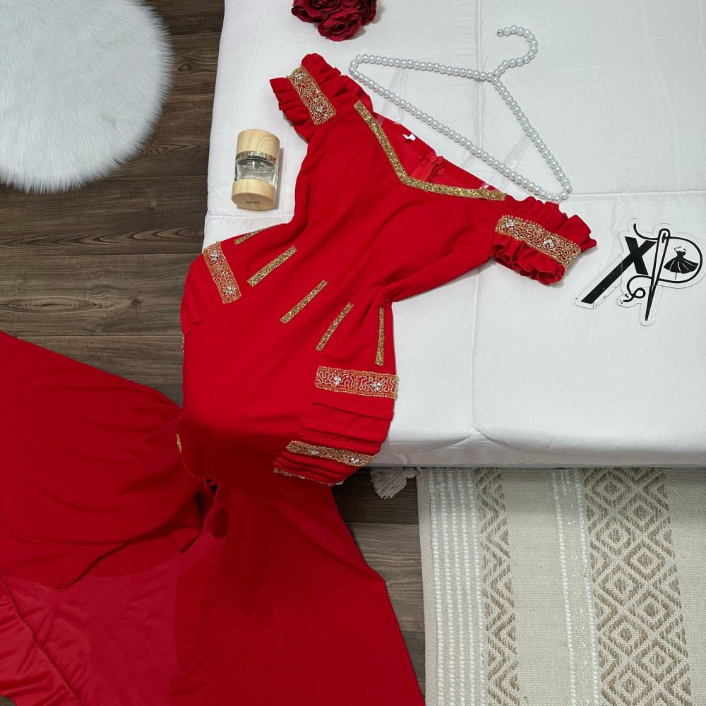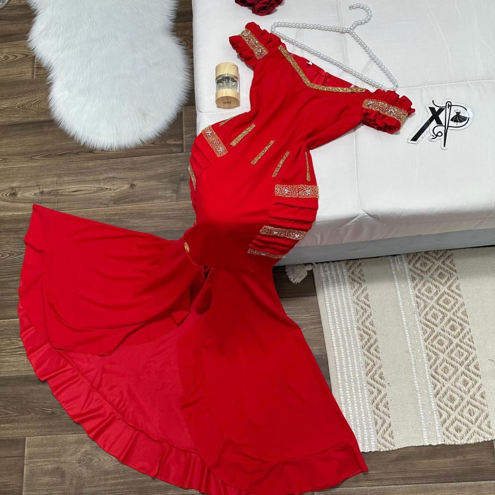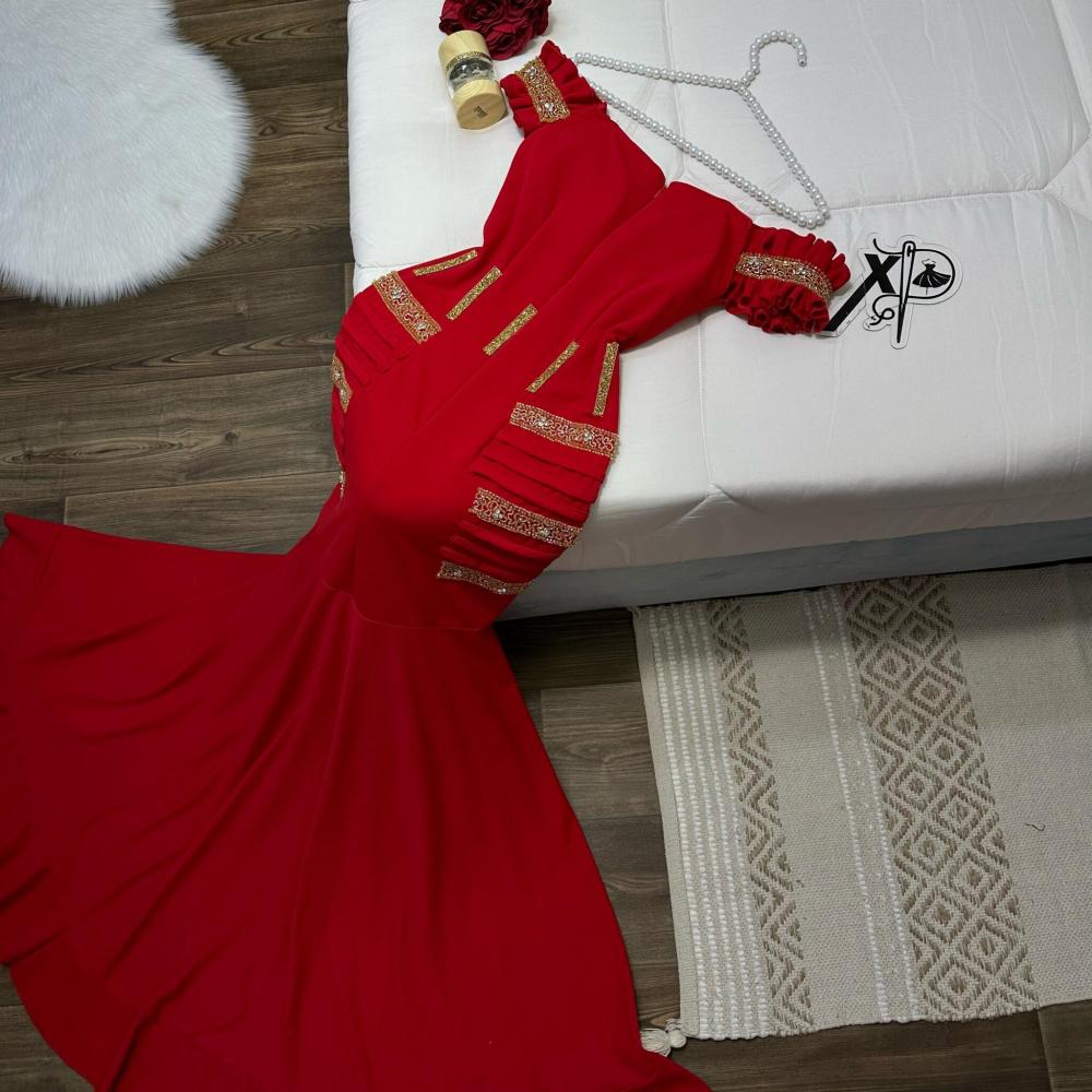 فستان سهرة قماش كريب استرتش باللون الاحمر