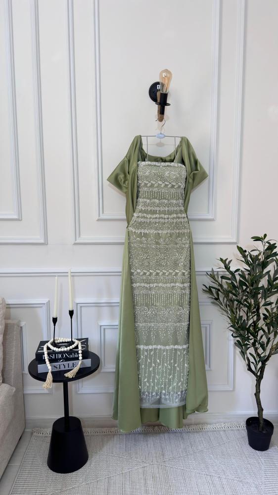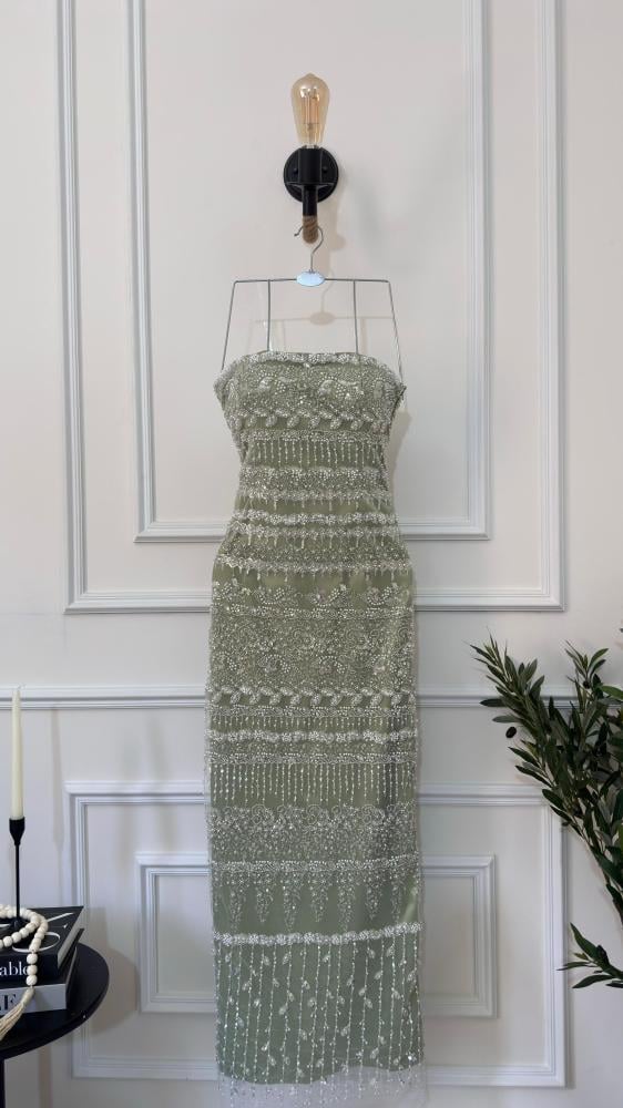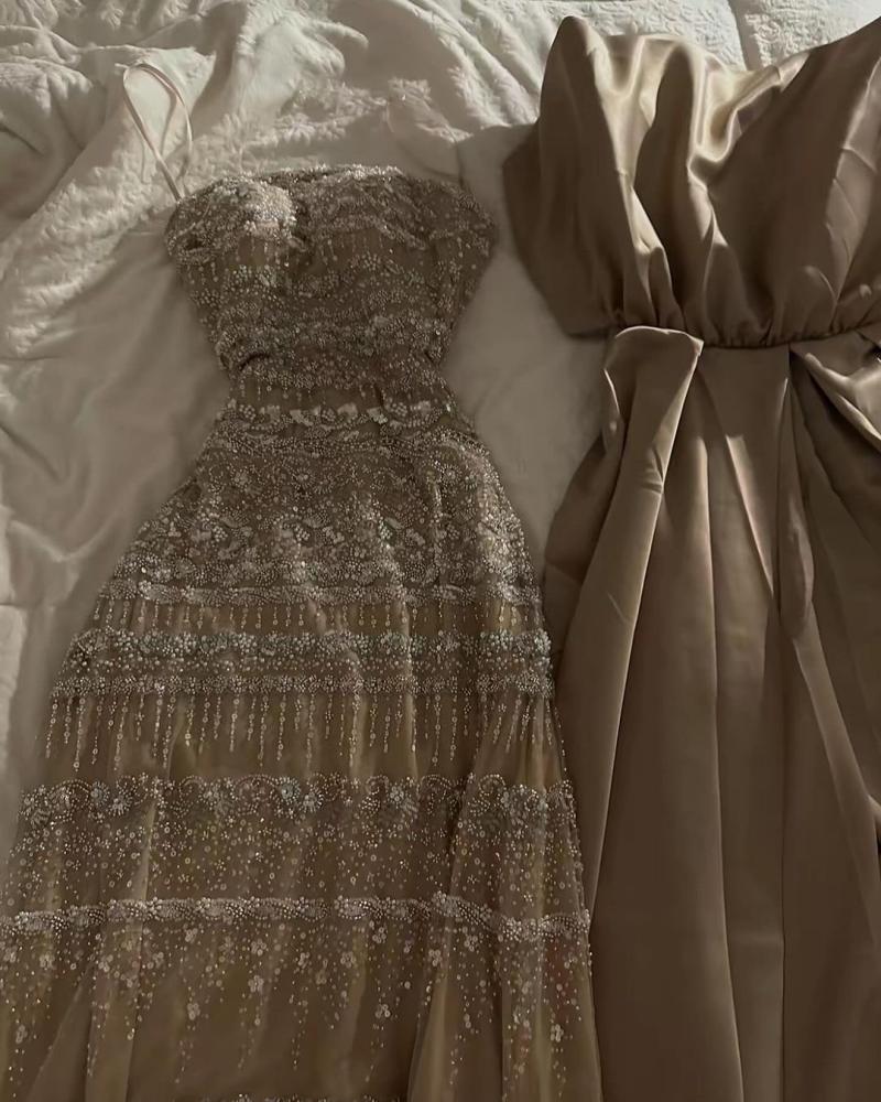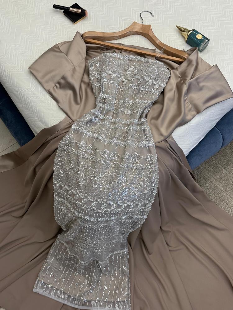 فستان سهره فصوص مع ذيل لونين