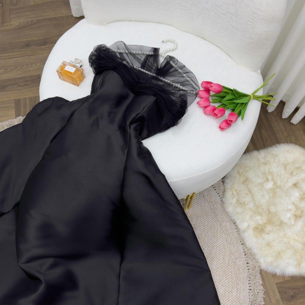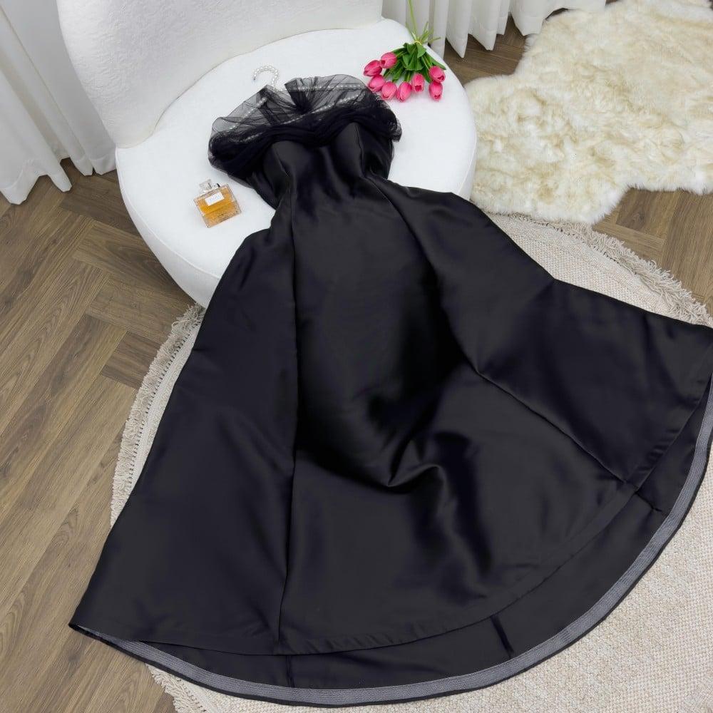 فستان ميكادو تل يتميز هذا الفستان بقماش ناعم وقصته التي تنسدل بشكل أنيق على الجسم. كما يتميز بالموديل الجذاب التي تُضفي لمسة من الإثارة على المظهر.