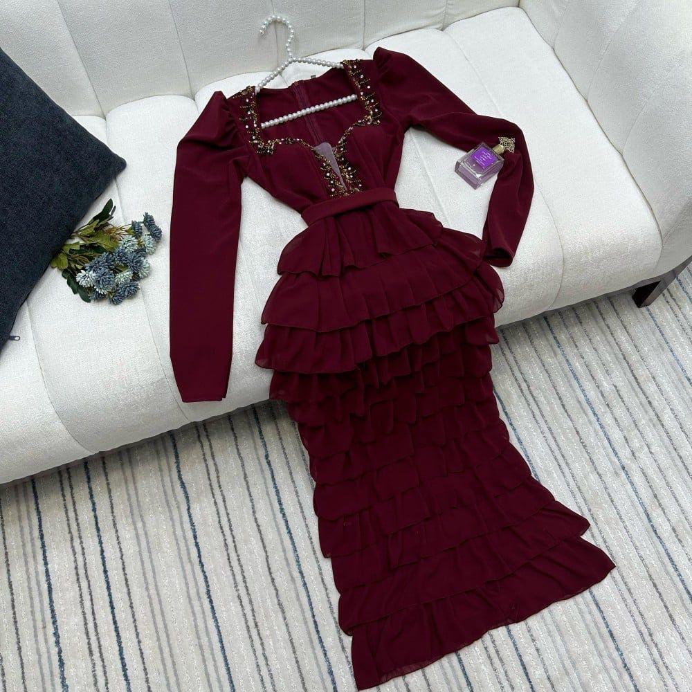 فستان نسائي طبقات تطريز